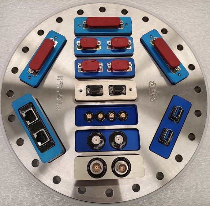 The following electrical feedthrough interfaces from Plug-In (France) are available to comply with some common camera and spacecraft interfaces: